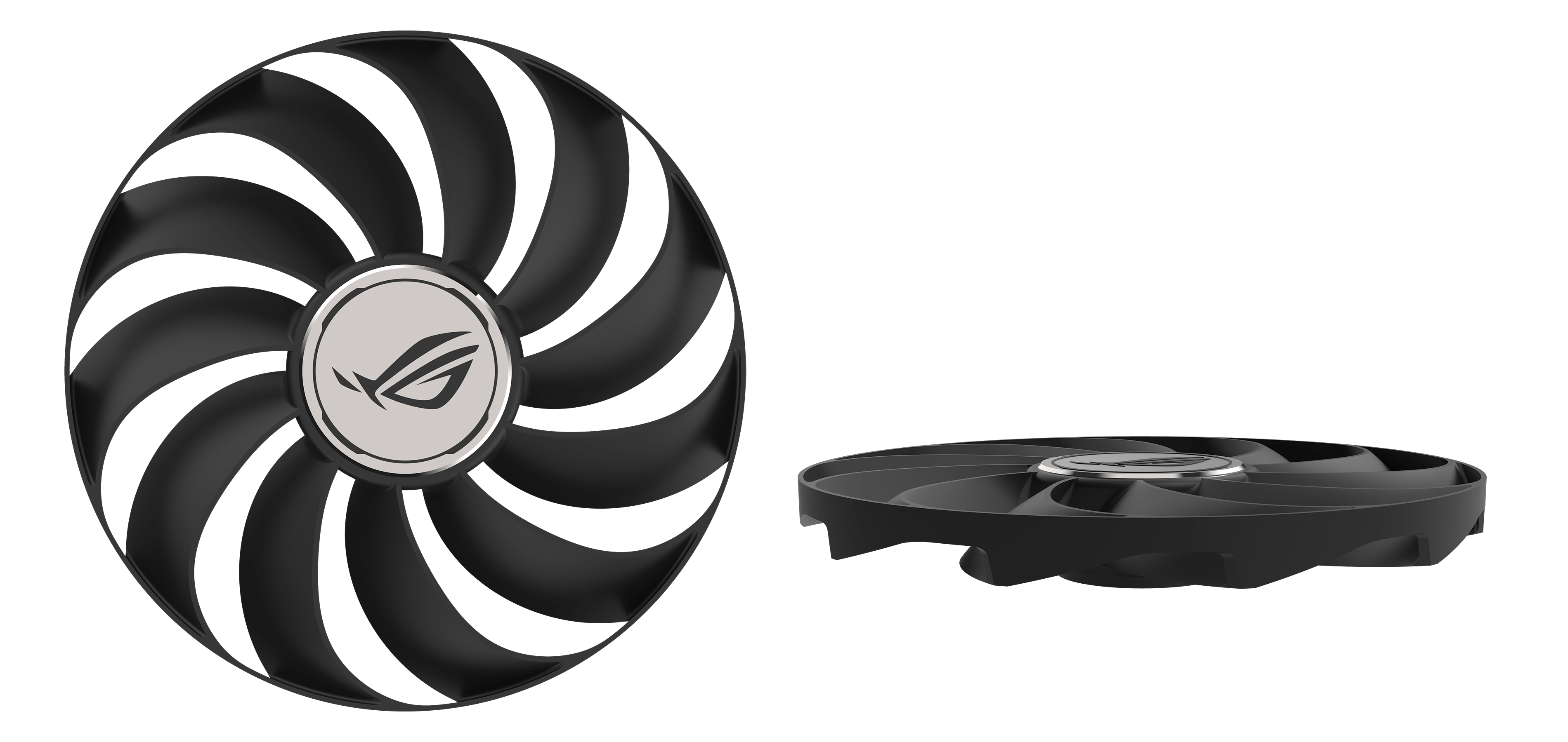 Eksen Teknolojili Fanlar, daha uzun kanatlara sahip olmak için daha küçük yuvalar kullanıyor ve aşağı yönlü hava basıncını artırmak için bir bariyer halkasından yararlanıyor.